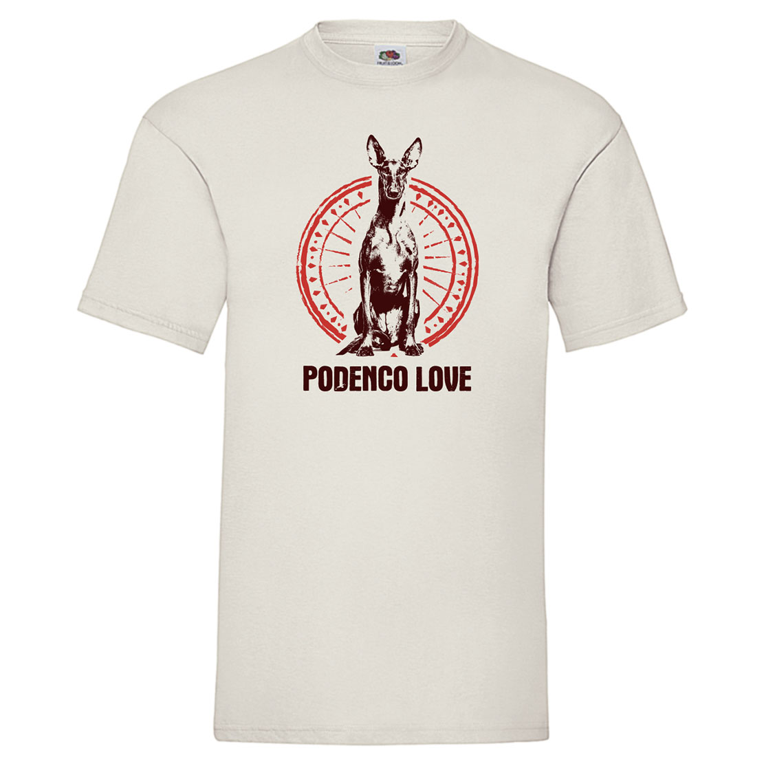 Camiseta de algodón color natural unisex, con manga corta y cuello redondo. Diseño PODENCO LOVE